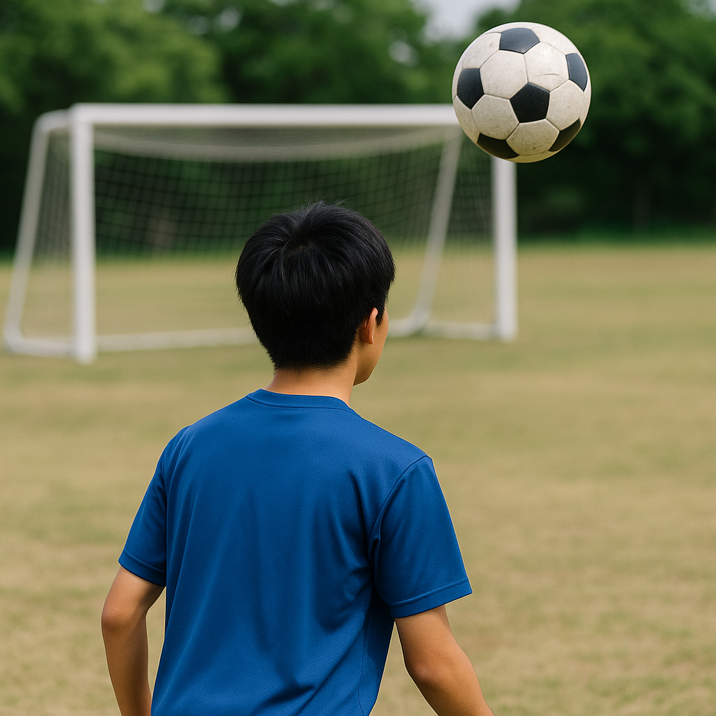 バウンド直前に半歩前へ、落下点に対して横から入ると高さ調整がしやすい。落ち際は足裏・インサイドで吸収、頂点付近は太ももで柔らかく。