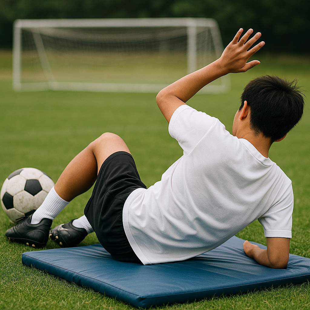 サッカーはスプリント、急停止、ターン、ジャンプ、そして相手との接触が絶えず起こるスポーツです。ボールを奪い合うなかで、バランスを崩して転ぶ場面は日常茶飯事。実際、手をついた衝撃や肩から落ちることで、捻挫や打撲、骨折、肩関節周辺のトラブルが起きることがあります。受け身は「転ばないため」だけでなく「転んでもダメージを最小限にする」ための技術です。