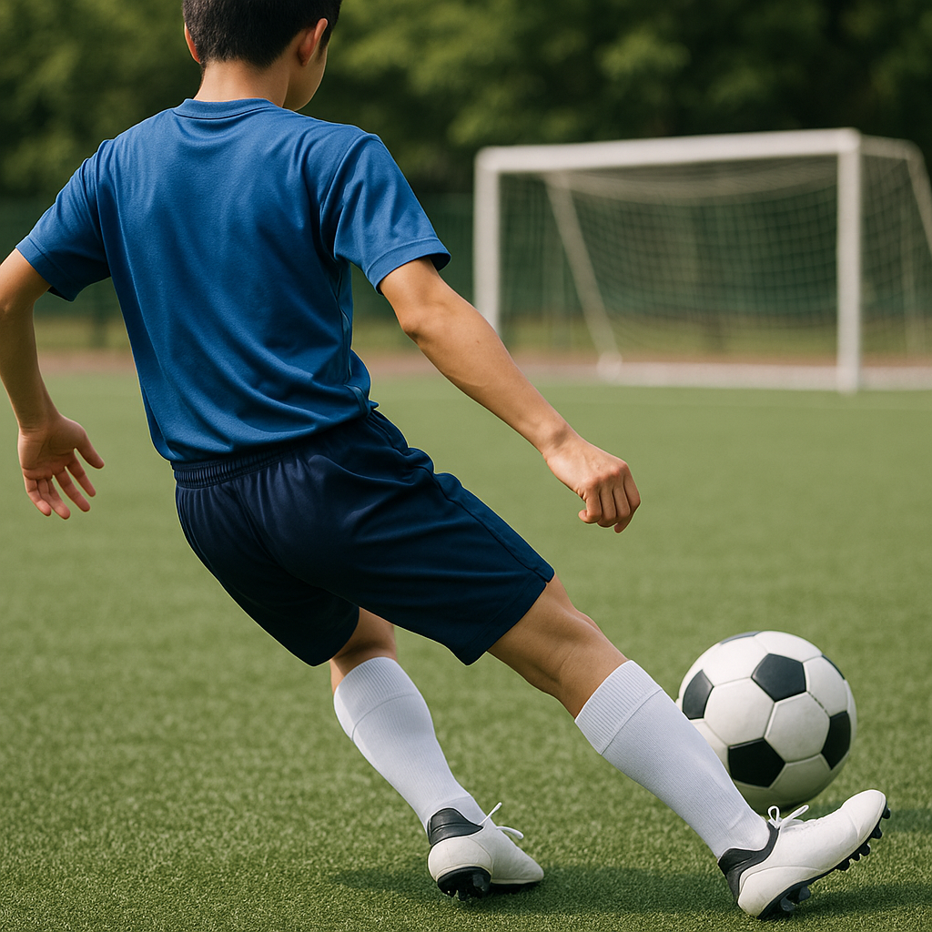 足先で触りに行くと空振り増。膝から前へ、体幹を運ぶ意識に切り替えましょう。二歩で入り、最後は“体→足”の順で当たると安定します。