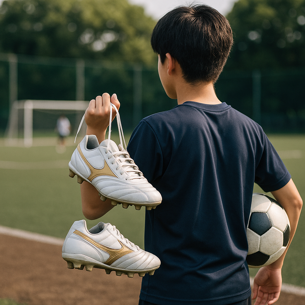 スパイク選びは「どれが流行っているか」ではなく「自分の足と環境に合っているか」。足型を測って、グラウンドに合わせて、用途で履き分ける。この3つを押さえるだけで失敗は大きく減ります。今日の練習前に、まずは今の一足を見直してみてください。つま先、小指、踵、屈曲点——チェックの積み重ねが、明日のプレーの安定につながります。