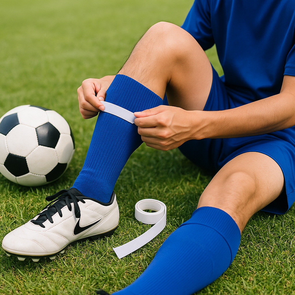 プレーの途中でソックスがずり落ちる。気になって集中が切れる。テーピングでガチガチにすると今度は痺れる——。サッカーでは「ソックスの保持」が意外なボトルネックになりがちです。本記事では、実際の現場で使われる“ずれ落ち防止グッズ”を徹底比較し、競技規則に沿った安全な使い方、汗や雨でも崩れない組み合わせ、肌が弱い人向けの代替策まで、失敗しない選び方をロードマップ化して解説します。