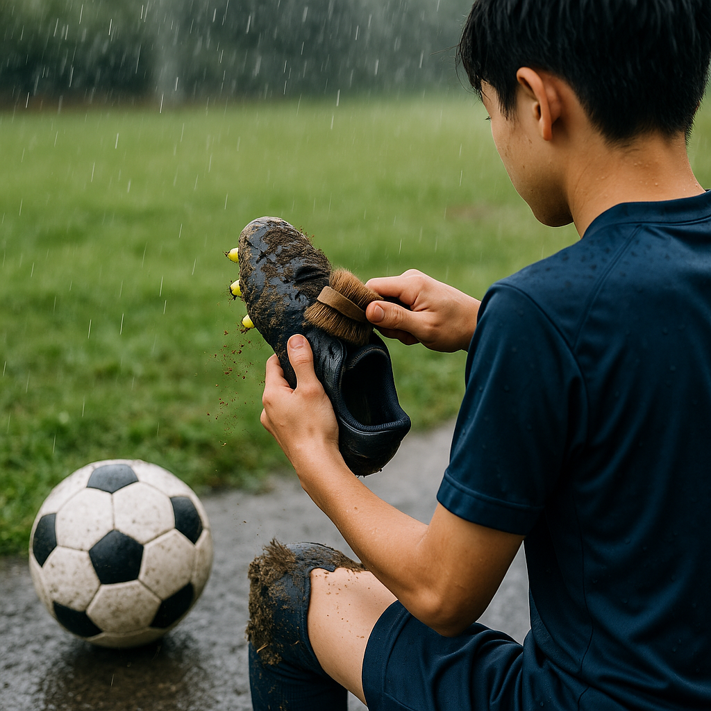 スパイクは「足と地面をつなぐ唯一の装備」。形が崩れず、乾きが早く、臭いが少ない状態は、そのまま次の一歩の安定につながります。サッカー雨の日のスパイク手入れ方法:試合後に泥残りゼロの5分ルーティンを習慣化すれば、コンディションの波を小さくし、連戦でも足元の信頼感を保てます。今日の5分が、明日のプレーの質を変えます。