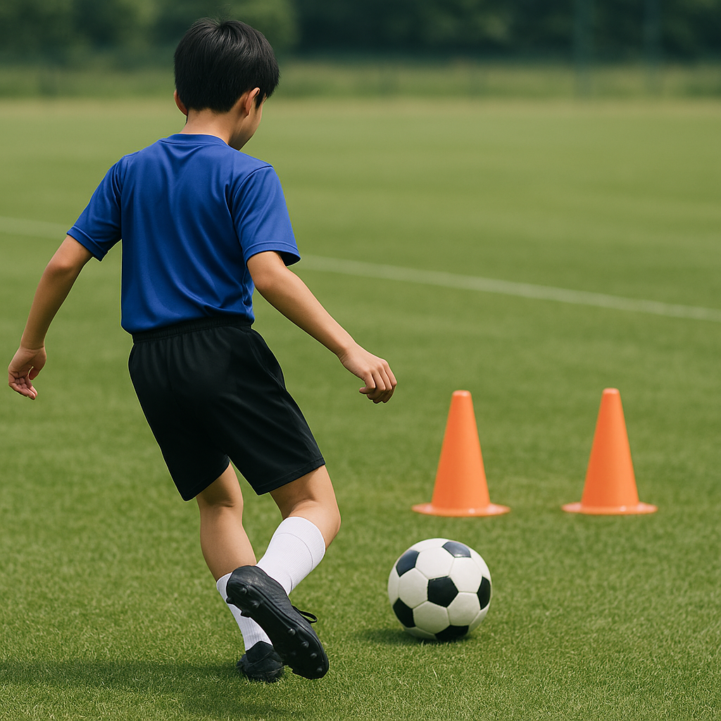 技術(インサイド/インステップ/アウトサイドの使い分け、軸足の置き方)だけ練習しても、相手・味方の位置が見えていなければ「通りません」。逆に、判断だけ磨いても蹴り分けができなければ「狙えません」。練習は常に、技術ドリルと状況判断ドリルをセットで行いましょう。