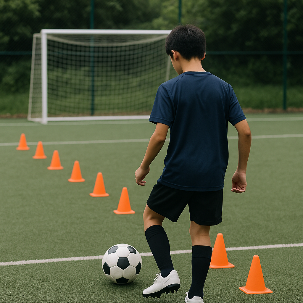 - FW:ワンタッチフィニッシュのコーナー命中率(5/10)、ターンの速さ(V字で往復タイム短縮)、逆足シュート成功基準作り