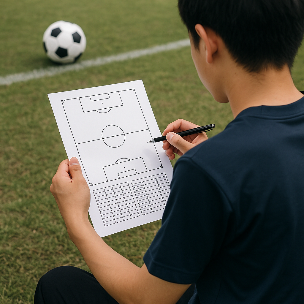 サッカーの試合分析は、紙1枚あれば十分に機能します。A4横に「狙い・KPI・時間軸ログ・セットプレー・個人チェック」を収め、記号とルールで迷いなく書く。数はシンプルに、行動へ直結させる。続けるほど、チームの言語が揃い、再現性が上がります。まずは今日の試合から、あなたの現場に合わせた1枚を作ってみてください。必要なのは、ペンと紙、そして継続だけです。