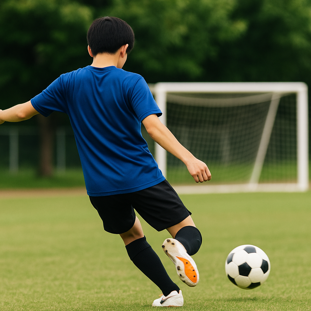 アウトサイドキックのコツは、力ではなく「面と入射角」で回転を作り、外→内へ戻すラインを設計すること。置き足の5〜7cm、つま先の5〜10度外、足首の内反+背屈、外→内の小さなフォロー。この4点がそろえば、やさしく、曲げて、通せます。今日からは、蹴る前に「始点・頂点・終点」を描き、短い助走で薄く当てる。壁ゲートやスロー&ストップで面の精度を磨き、2人ドリルでタイミングを合わせる。積み重ねるほど、狭い局面でも相手の背中を通す一本が増えていくはずです。ゲームを動かすアウトサイドを、自分の武器に育てていきましょう。