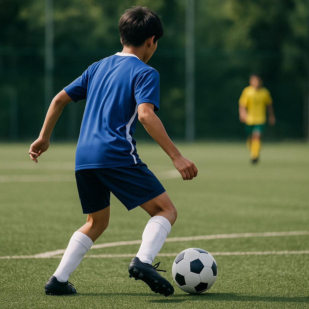 キックフェイントの“見せる力”は、シザースの緩急、ダブルタッチの二段、カットインの角度作りに直結します。土台ができれば、他のフェイントも短時間で伸びていきます。今日から3ステップ「見せて・ずらして・抜く」で、試合を動かす一手を手に入れてください。