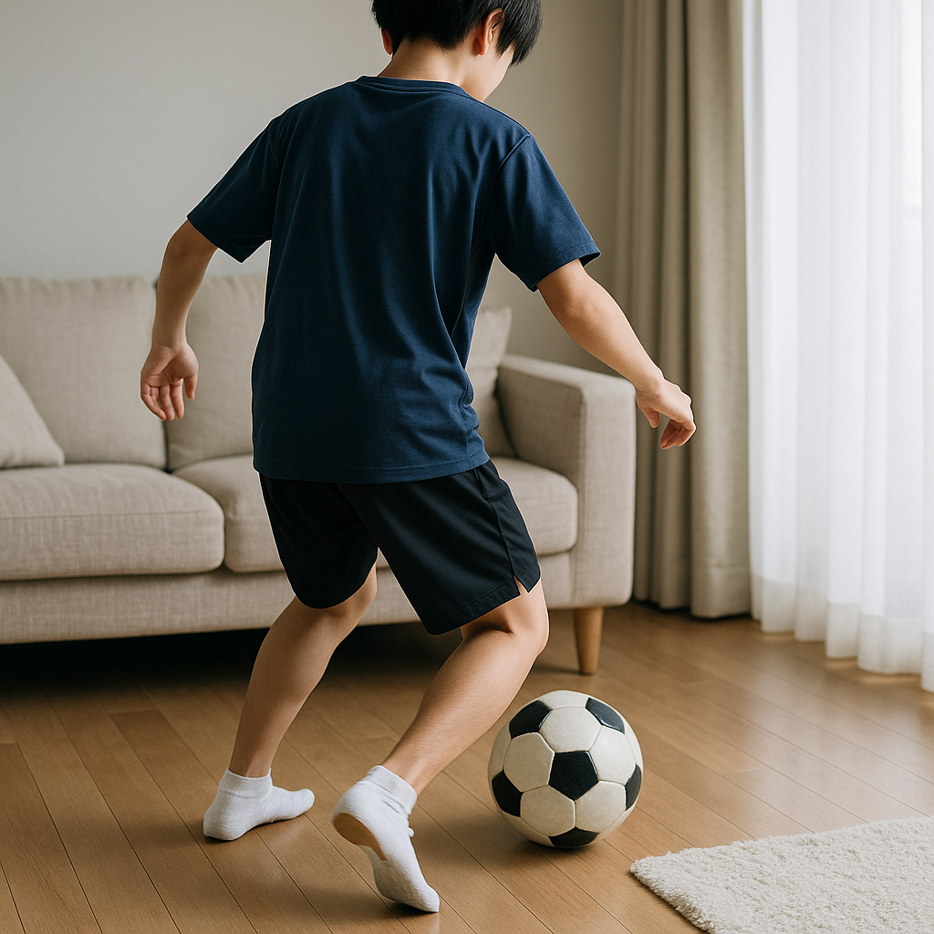 クライフターンは、家で“壁なし・1畳”でも磨ける技です。鍵は「視線・軸・次の一歩」。音を抑え、角度を一定にし、初速を作る。たった10分でも、毎日の短い積み重ねが反応速度と完成度を引き上げます。まずは靴下ボールと目印2点から。今日の1回が、試合の1歩目を変えます。