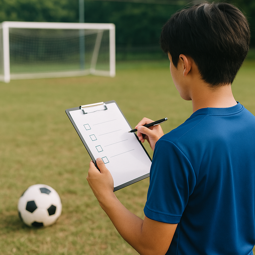 - スマホのメモでOK。練習/試合ごとに“本数・枠内・得点・距離”を記録
