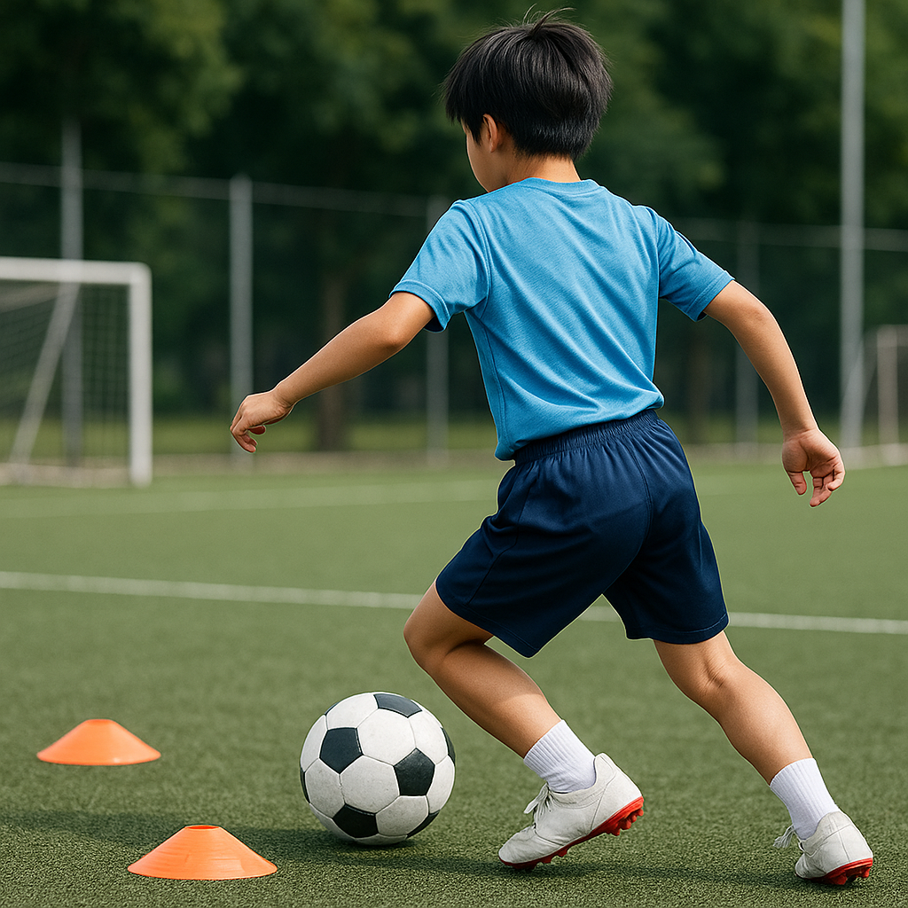 方向転換の瞬間にモタつかず、すぐに加速へつなげる。これが「失速しないドリブル」のコアです。本記事では、小学生でも身につけやすい考え方と、家庭や公園でも取り組める3つの練習をわかりやすく紹介します。ポイントは難しいテクニックを増やすことではなく、「接地」「向き」「視線」の3つを整理して、最初の2歩で再加速する流れを体に覚えさせること。今日から使える具体策だけをまとめました。