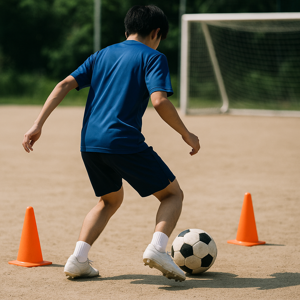 方向転換は通過点。ターン後の2歩と、パス/ドリブル/シュートの即決でプレーは完結します。今日紹介したドリルを軸に、出口の質と再加速のキレを磨き、試合で「半歩先」を取り続けましょう。