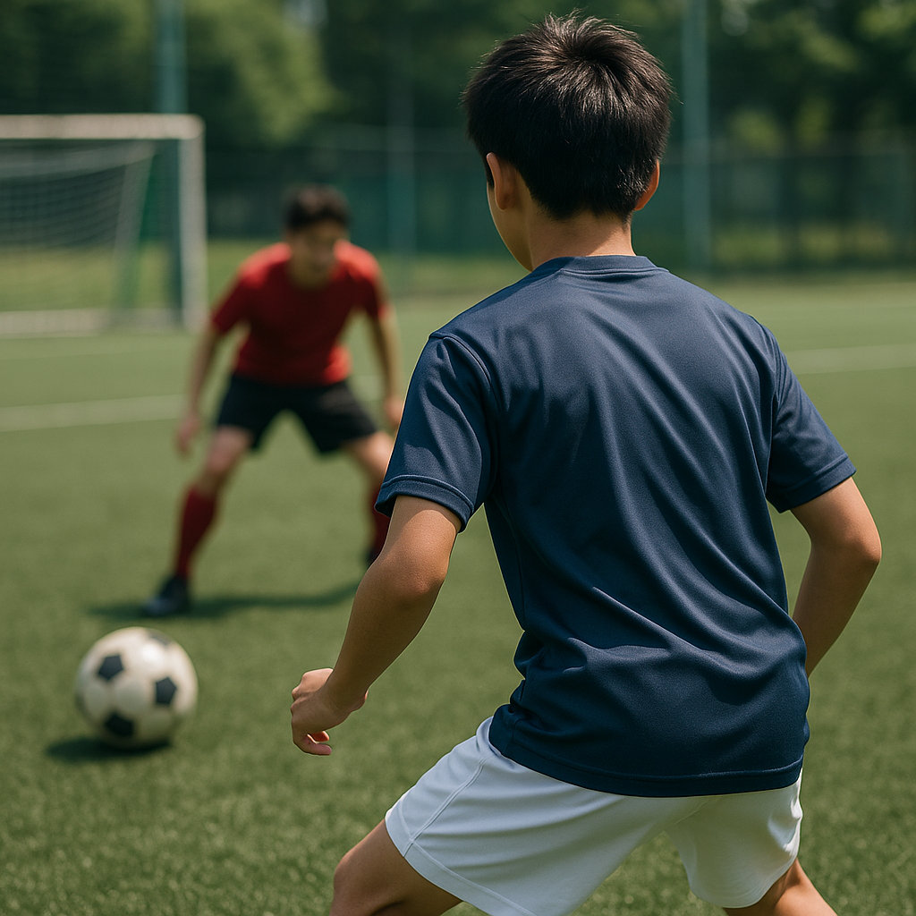 最初の1分で、相手の利き足、カットインか縦突破か、運ぶ側か仕掛ける側かを観察。利き足側の内側を閉じれば、選択肢を減らせます。