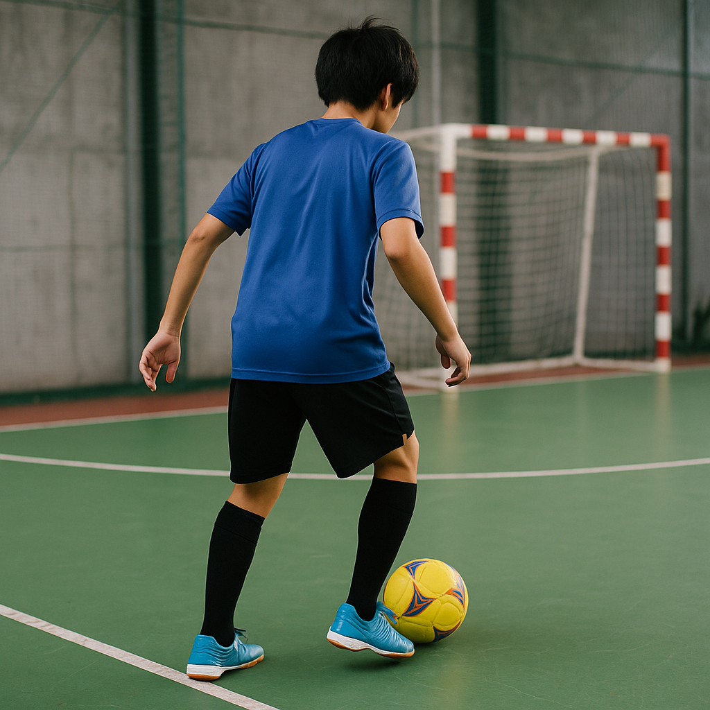 フットサルは「狭い」「人数が少ない」「ボールが弾みにくい」という3つの特徴が、学習環境として優秀です。スペースが小さいからこそプレッシャーが速く、視野確保や体の向きづくりが必須になります。少人数なので一人あたりの関与回数が増え、攻守の切り替えも頻発。ローバウンドの4号球は収まりが良く、ファーストタッチやインサイド・アウトの精度練習に直結します。