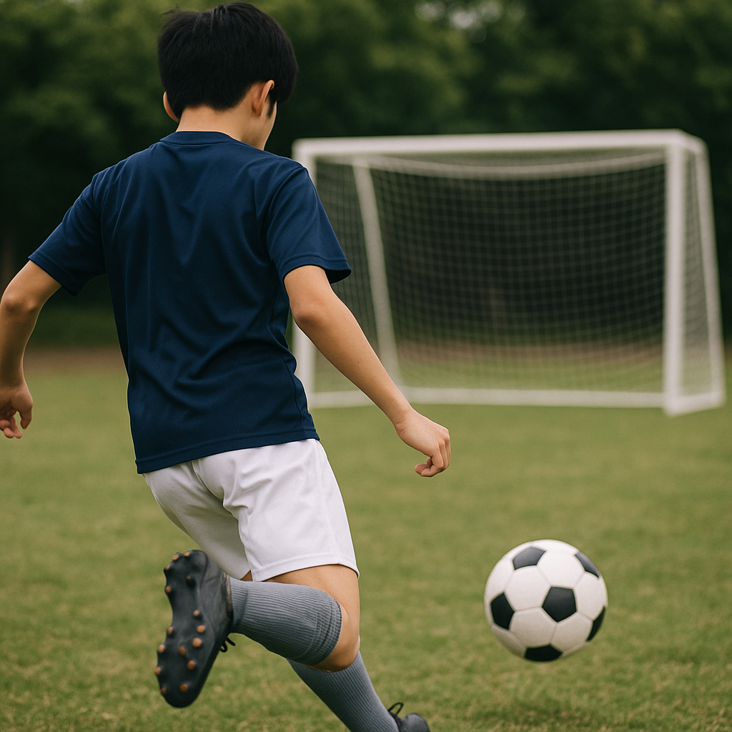 足首を固め、当てる瞬間は「短く・厚く」。そのあとに運ぶようなフォロースルーを足の面でガイドします。強さは振りより「当て方」。面が安定すれば、力まなくてもボールは走ります。