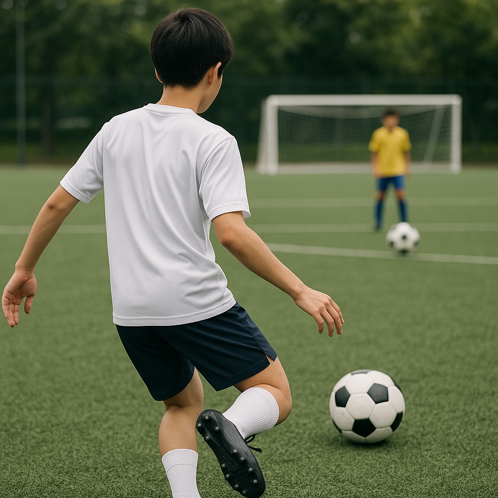 どのキックでも軸足の向きと置き所が命。狙うコースのやや外側に軸足を置くと、蹴り出しの通りが安定します。