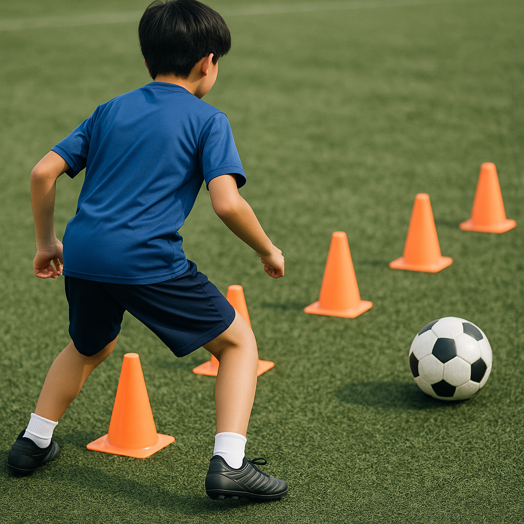 「サッカーの敏捷性トレーニング|小学生の反応×方向転換5分強化」へようこそ。毎日の練習にたった5分だけ足す短時間ルーティンで、“合図に反応して一歩目が速い”“切り返しで置き去りにする”をねらいます。用具は最小限、場所も広くなくてOK。安全第一で、楽しさと手応えが両立するメニューにまとめました。