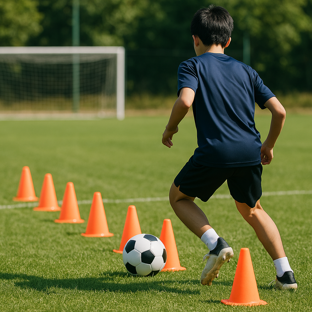 敏捷性は一夜で身につくものではありませんが、正しい順序で積み上げれば、確実に変わります。フォーム(減速・脛角度・静かな接地)を土台に、反応と判断を重ね、最後にボールと対人で実戦化。今日の5分が、数ヶ月後の「一歩目の違い」につながります。無理をせず、でも丁寧に。それが中学生の伸びしろを最大化する近道です。