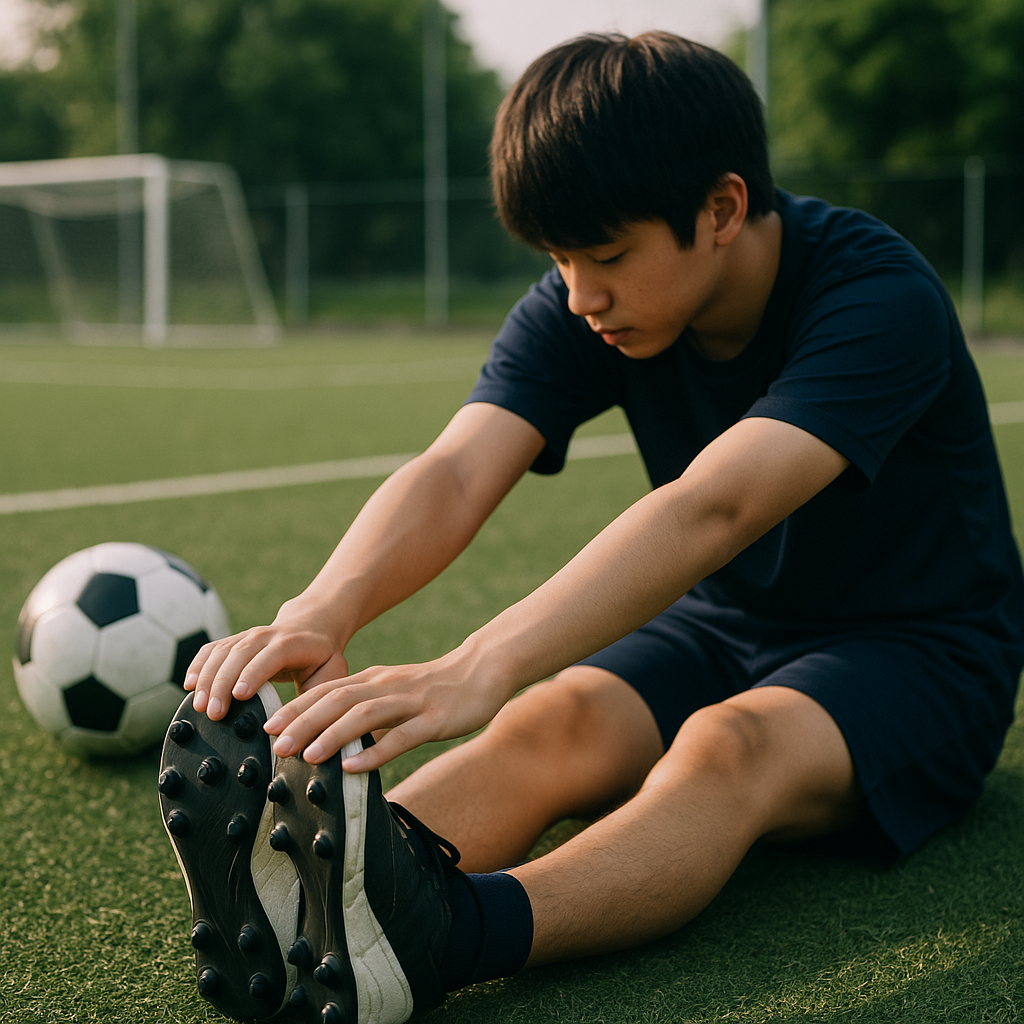 サッカーの肉離れ予防は柔軟から。ただし、柔らかいだけでは足りず、伸張性の筋力と、正確に動く神経の準備があって初めて実戦で生きます。試合前は「温める→動かす→走りを整える→少し速く」、試合後は「落とす→伸ばす→ほぐす→補う」。この最短ルーティンを、今日から淡々と積み上げてください。長く強く走り続けるための“保険”は、7〜10分の小さな習慣にあります。痛みや強い違和感があれば無理をせず、必要に応じて専門家に相談しましょう。