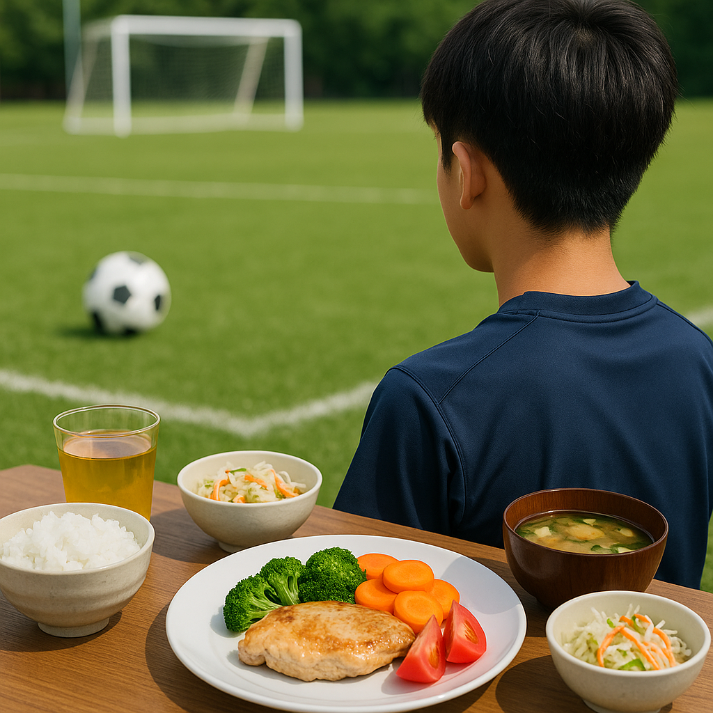 成長期の中学生サッカー選手には、「伸びる体」と「走り切る体力」を同時に支える食事が必要です。難しい理論を並べる前に、まずは毎日続けられる具体策を。この記事では、成長期に必要な栄養の考え方から、学校と部活に合わせた1日の食事設計、平日・試合日のメニュー例、量の目安や作り置きのコツまで、今日から実践できる形でまとめました。ご家庭でも本人でも選びやすい「再現性の高いメニュー」を用意しています。