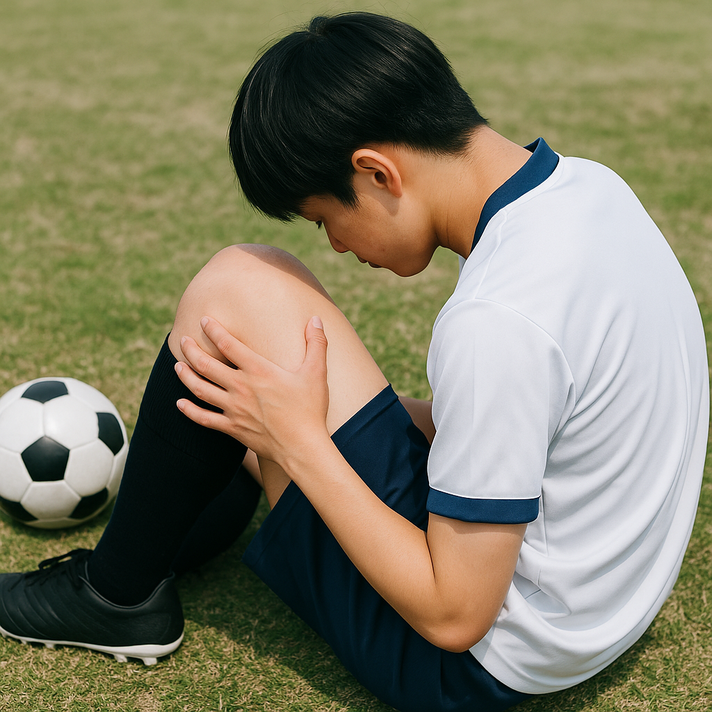 膝や踵がズキッと痛む。成長期のサッカー選手には珍しくありません。とはいえ「どこまでやっていい?休むべき?」は悩みどころ。この記事では、成長期に多い膝(オスグッド/SLJ)と踵(セーバー病)の痛みについて、休む目安と復帰基準をわかりやすく整理。翌日の悪化を防ぎながら、できるだけ早く安全にピッチへ戻るための実践ガイドです。