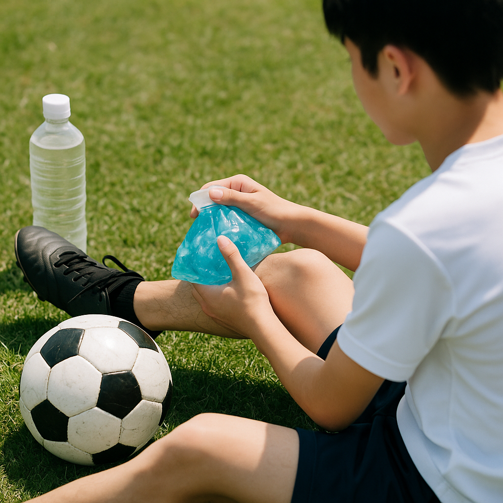サッカーで最も起こりやすいケガの一つが足首の捻挫です。応急処置の基本はRICE(安静・冷却・圧迫・挙上)。この記事では、とくに「I=Ice(冷却)」のタイミングと“時間・量”の具体的な目安を、サッカー現場で使える形で丁寧に解説します。合わせて、捻挫の仕組み、受傷直後のチェックリスト、復帰までのロードマップ、再発予防までを一気通貫でまとめました。図や画像がなくても、その場で動ける実践的な内容を目指しています。