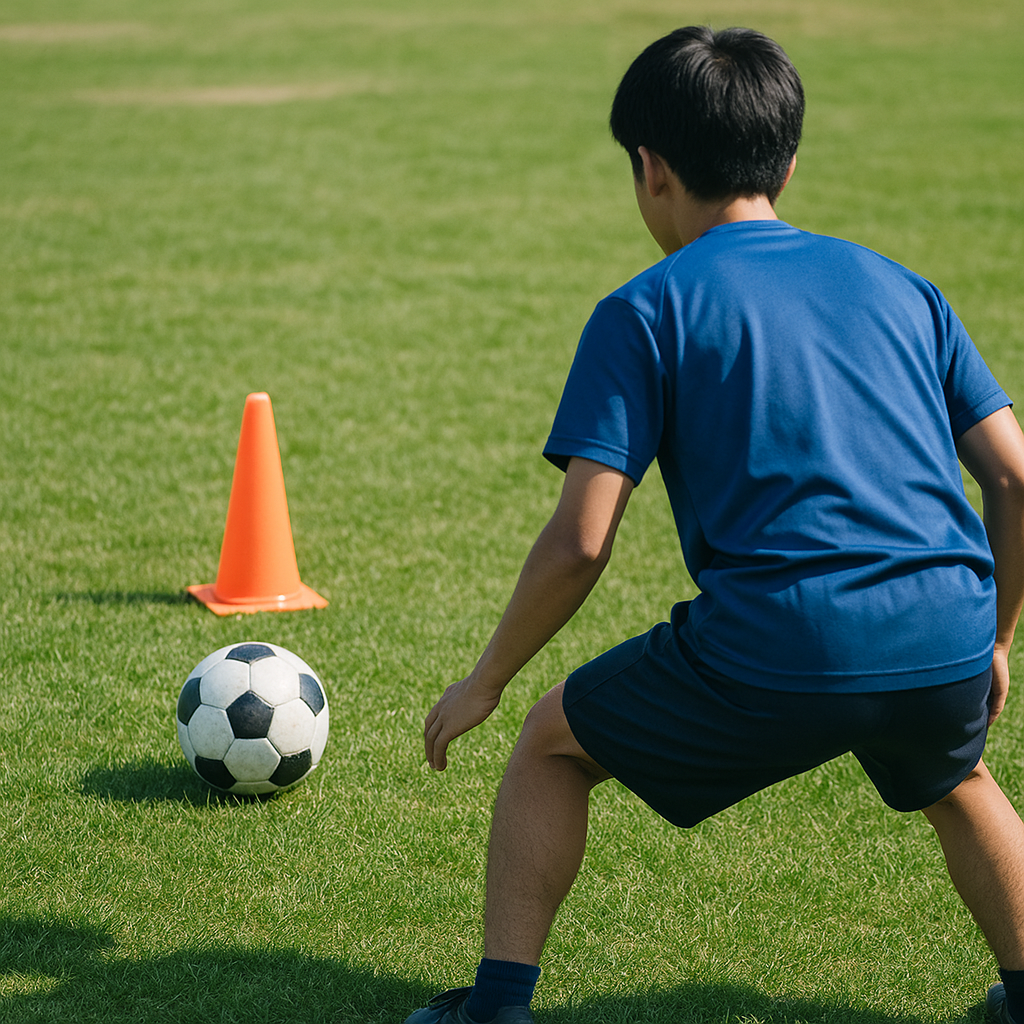 足を出さない守備は、消極的ではありません。相手の時間を奪い、自分の勝てる土俵に引きずり込むための能動的な技術です。待てる勇気で焦らず、止まれる体で抜かれず、向きを作って限定する。この三原則が身につけば、1対1の不安は自信に変わります。今日の練習から、まずは「最後の2歩」だけでも徹底してみてください。数字(被突破率・限定成功率)で、確かな手応えが見えてきます。