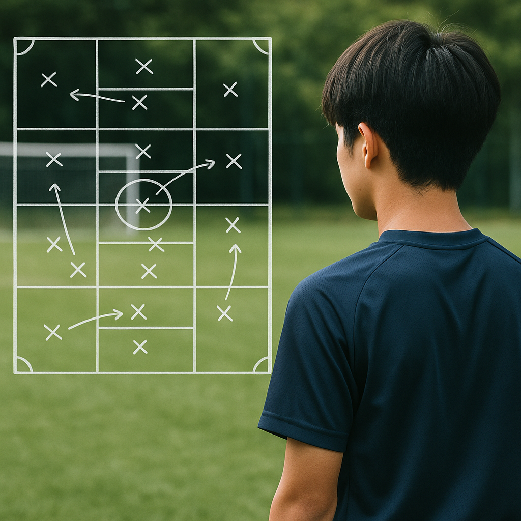 ゴールはシンプルです。「味方がどこにいて、相手がどこにいて、ボールがどう動いても、自分の立ち位置と次の一歩が言語化できる状態」になること。読み方のコツは、各セクションを以下の順でイメージすることです。