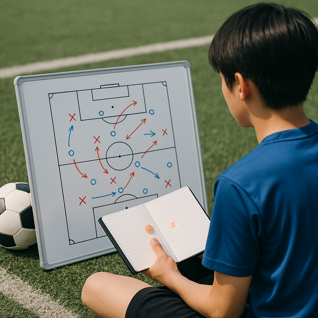図がなくても、言葉で動きの“絵”は共有できます。大切なのは、全員が同じ言葉で同じ絵を思い浮かべること。練習での合言葉とKPIを小さく始め、週ごとに一つずつ上書きしてください。切替の質が上がると、サッカーが一気に楽になります。次のトレーニングから、まずは「5秒」と「前・外・背後」を合言葉にどうぞ。