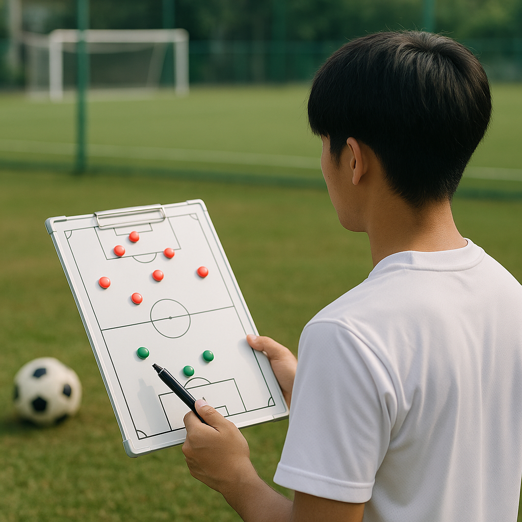 ミドルプレスは、“走る守備”ではなく“賢く奪う守備”。誰かのスーパープレーに依存せず、全員の数センチ・半歩・半身でゲームを設計できます。今日の合図と距離の基準をチームの共通言語にして、明日の練習から少しずつ精度を上げていきましょう。中盤で奪えたときのスタジアムの空気——あの一瞬のざわめきが、勝利の合図です。