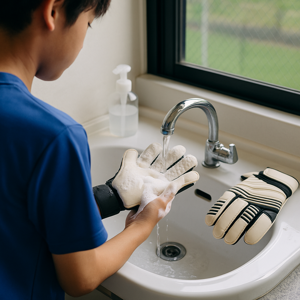 パームのラテックスは、微細な気泡を持つ柔らかい発泡体です。ここに泥や人工芝のラバー粉が詰まると、接地面が「滑る膜」で覆われ、グリップが落ちます。さらに汗や皮脂はラテックスを劣化させやすく、放置すると硬化やひび割れの原因に。つまり「汚れを残さない」「乾かしすぎない」「熱と直射日光を避ける」——この3点で、グリップと寿命は大きく変わります。