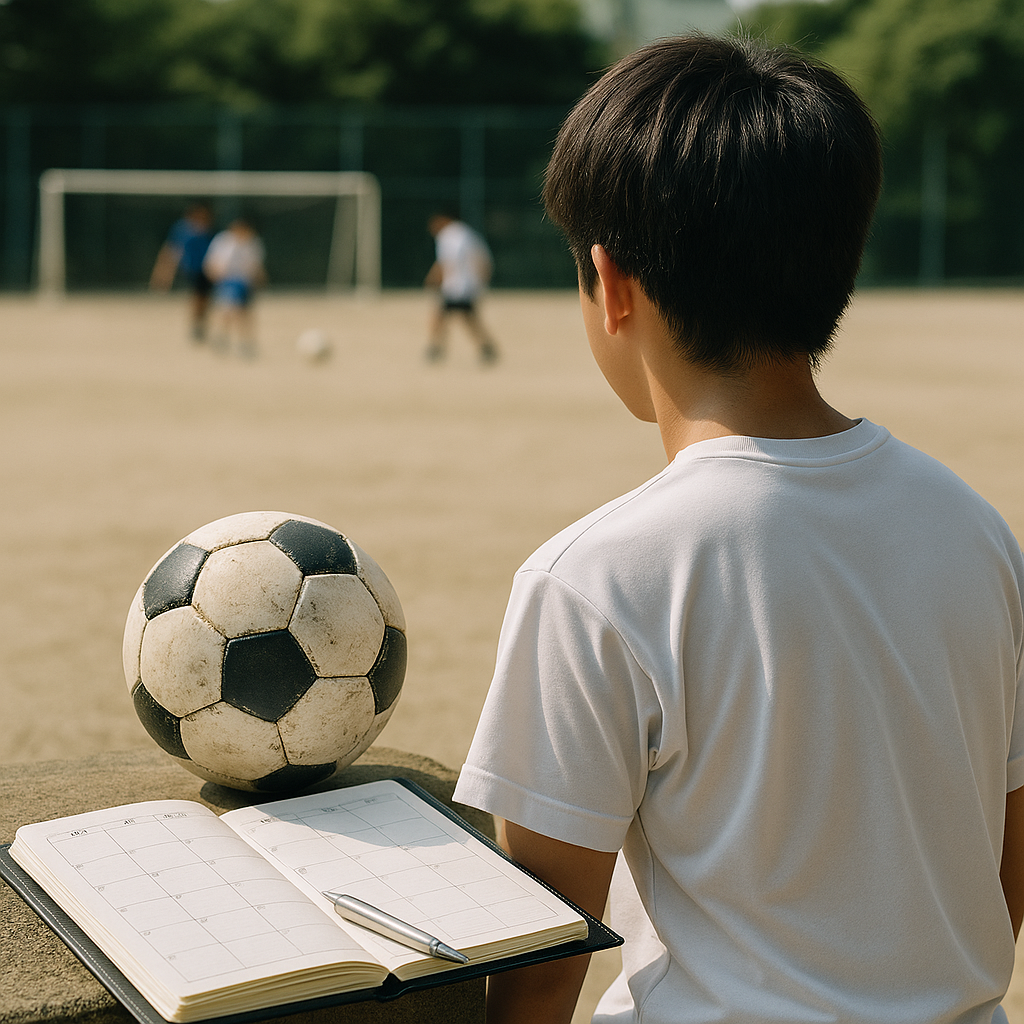 - 内容:基礎技術(パス・トラップ・ドリブル)と体力のベース作り。翌日に強い筋肉痛があれば次回は半分の量で。